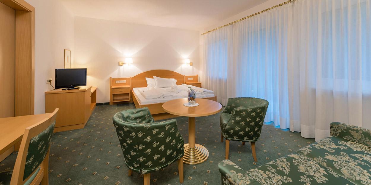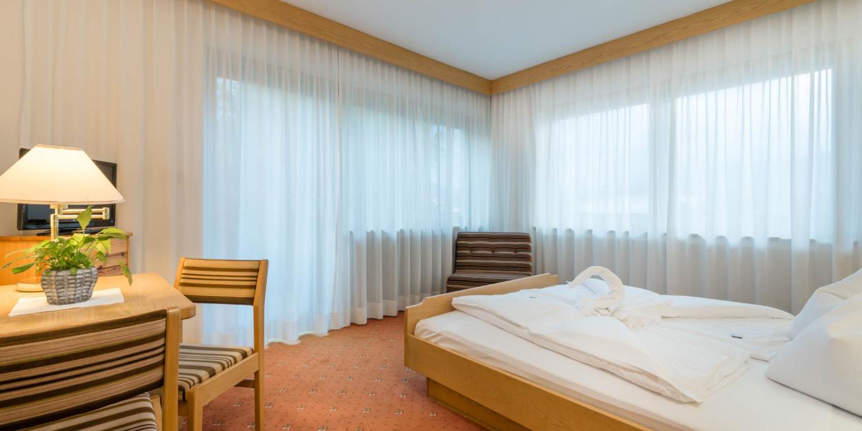 Unsere gemütlichen Economy Standardzimmer (18m²-25m²) befinden sich im ersten und zweiten Stock – ohne Aufzug – mit Blick auf die Pustertaler Bergwelt oder den Kronplatz und unseren Garten. Sie verfügen über einen Balkon, Doppelbett, Bad mit Dusche oder Badewanne und Föhn, ausziehbare Couch, Schreibtisch, Telefon, Sat-TV und Safe.