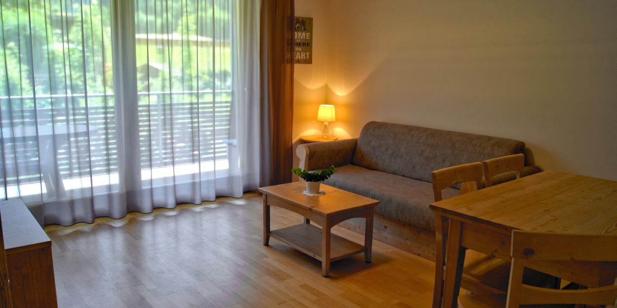 Il confortevole appartamento di 55m² al 1° piano (con ascensore) nell'edificio adiacente, dotato di una camera con letto matrimoniale, un bagno, un ampio soggiorno con angolo cottura e balcone. L'appartamento é dotato di asciugamani, posate e pentole, biancheria da letto. Tutti i servizi inclusi vengono offerti nella Pensione Prack.